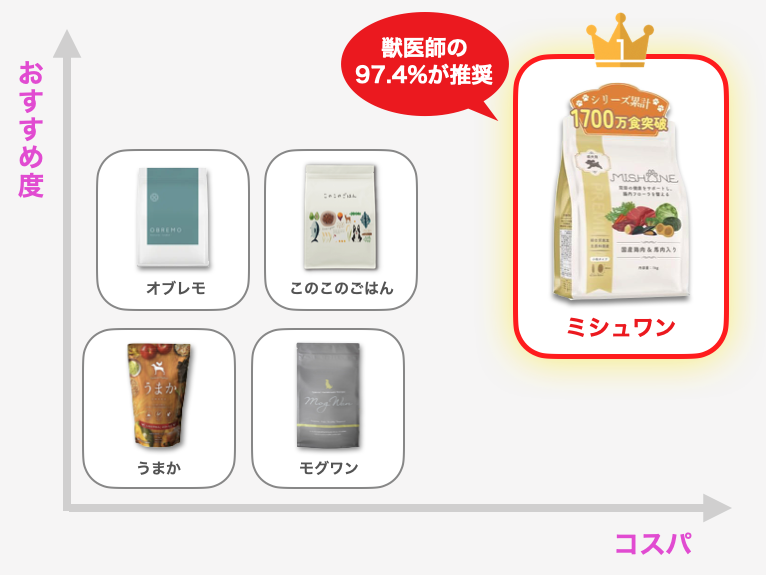 約97.4%の獣医師がこのミシュワンを推奨しているという、太鼓判を押しているのも信頼できるポイント!